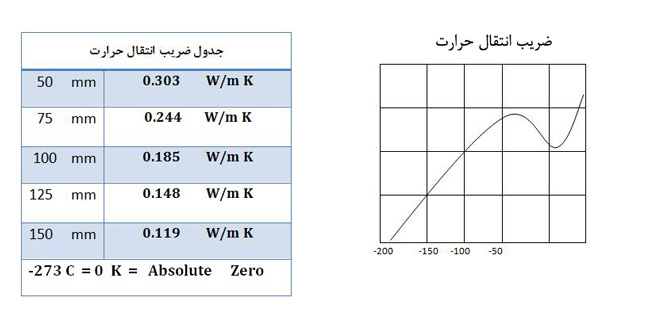 همانگونه که از نمودار می توان مشاهده کرد کمنرین میزان ضریب انتقال حرارت بین دانسیته 38 الی 42 کیلو گرم بر متر مکعب قرار دارد. بدین معنی که افزایش دانسیته به بیش از این حد و یا کاهش آن به پایین تر از این مقدار منجر به افزایش ضریب انتقال حرارت و یا به عبارت ساده تر هدر رفتن انرژی خواهد شد .