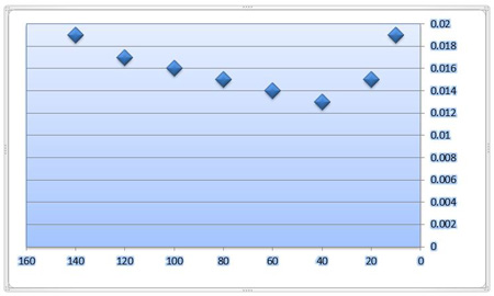 همانگونه که از نمودار می توان مشاهده کرد کمنرین میزان ضریب انتقال حرارت بین دانسیته 38 الی 42 کیلو گرم بر متر مکعب قرار دارد. بدین معنی که افزایش دانسیته به بیش از این حد و یا کاهش آن به پایین تر از این مقدار منجر به افزایش ضریب انتقال حرارت و یا به عبارت ساده تر هدر رفتن انرژی خواهد شد .