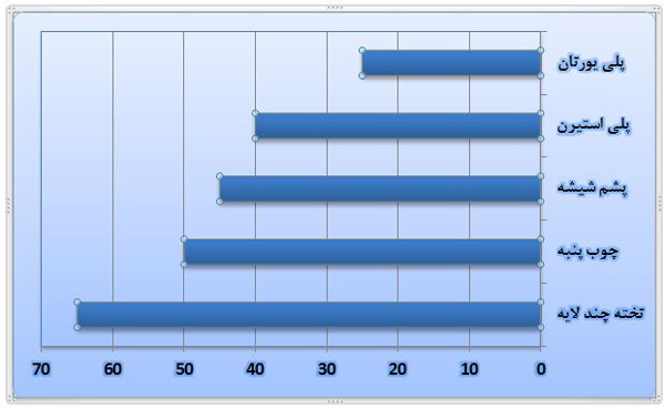 در نمودار زیر ضخامت مورد نیاز برای رسیدن به ضریب انتقال حرارت یکسان بین موارد مختلف در مقایسه با پلی یورتان rigid نشان داده شده است .